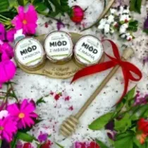 Dodaj do listy Wyroby Naturalne Sp. z.o.o Zestaw 3 miodków na podstawce z łyżką PREZENT. 72793 Dodaj do listy 26,99 zł Do koszyka